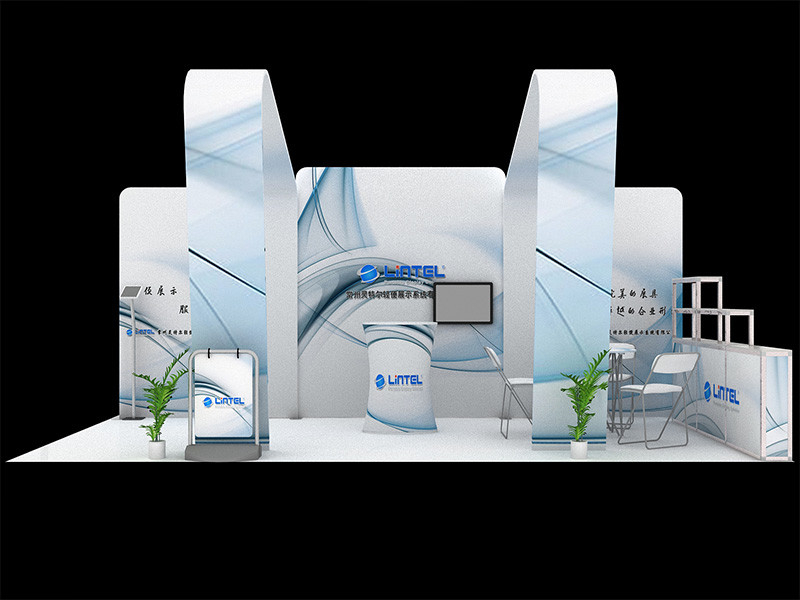 部分展臺的結構是基于多造型設計用料的,一套展臺材料在增加或減少部分桿組后,可按需求重新構建設計。再按需制作畫面,即刻多造型、不斷重復使用。為客戶節省相當可觀的參展成本。下圖簡單介紹一套展臺(增加部分桿組后)構建多種展臺造型的案例: